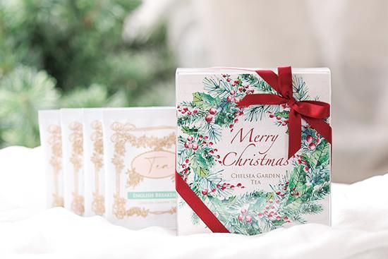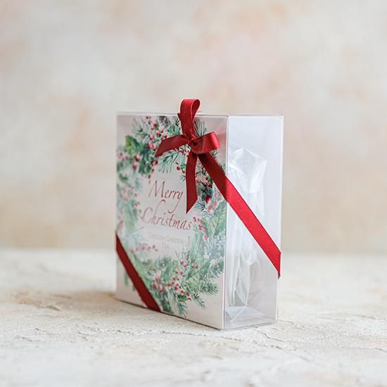 BOX正面と背面にクリスマスリースをデザインした見た目も味もとびきり優雅なギフトです。